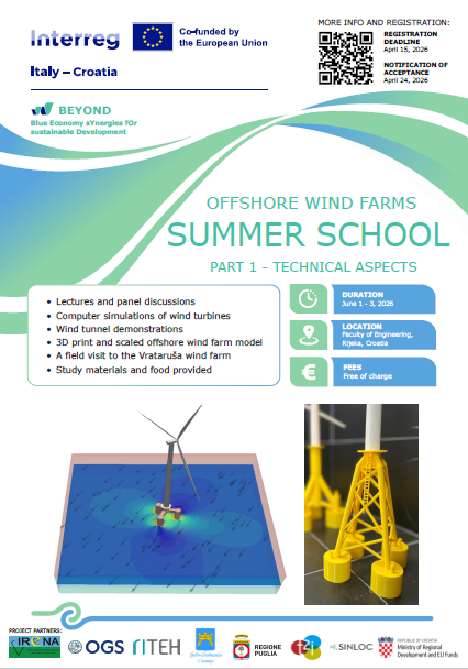 U sklopu projekta Blue Economy sYnergies fOr sustaiNable Development (BEYOND), na Tehničkom fakultetu Sveučilišta u Rijeci organizira se Ljetna škola o offshore vjetroturbinama – Tehnički aspekti.