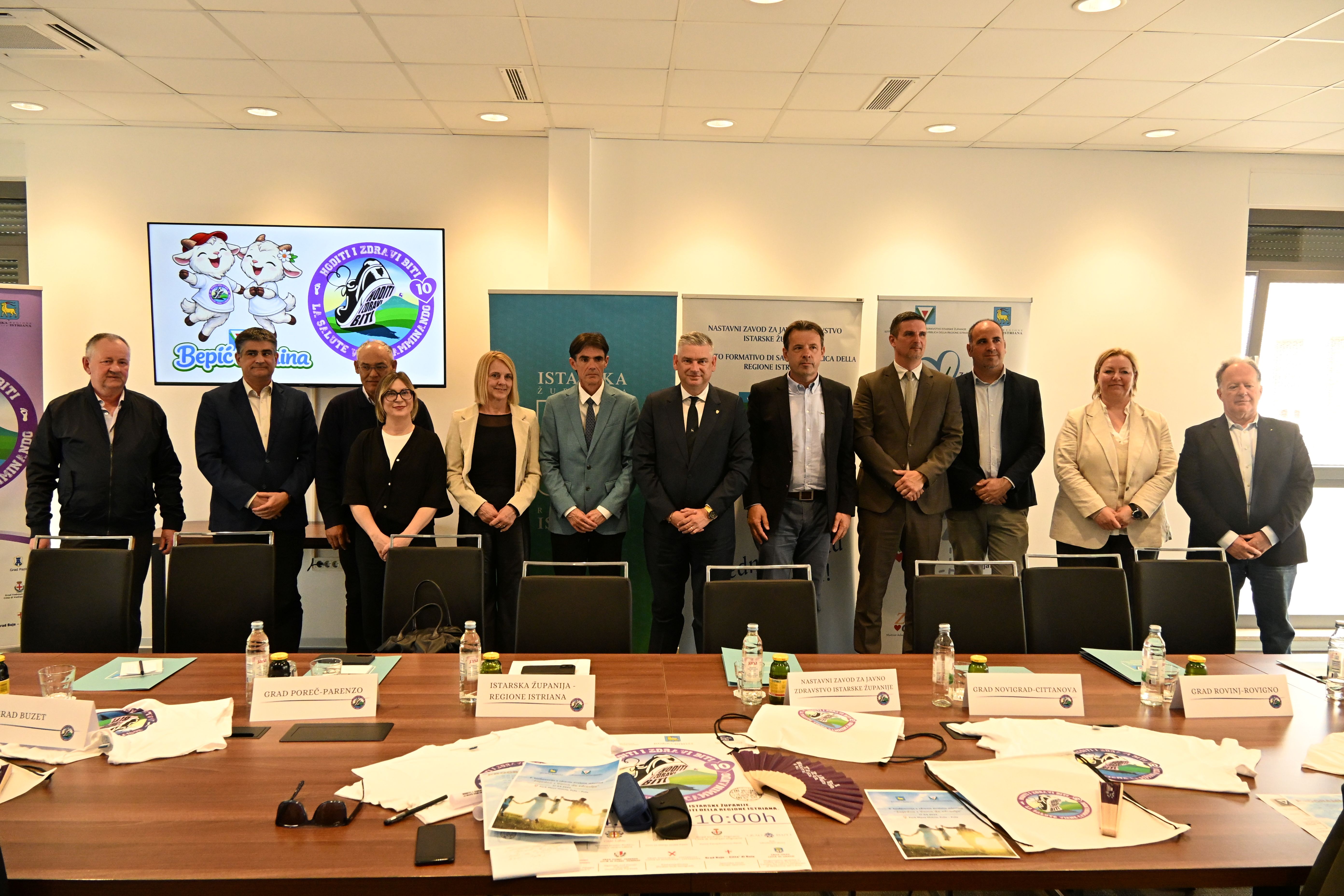 Deseta jubilarna manifestacija „Hoditi i zdravi biti – La salute viene camminando” održat će se istovremeno u svih deset istarskih gradova u subotu, 18. travnja, s početkom u 10 sati, s ciljem promocije zdravih životnih stilova, najavljeno je na današnjoj konferenciji za novinare održanoj u Nastavnom zavodu za javno zdravstvo Istarske županije, u Puli. Na konferenciji su sudjelovali ravnatelj Zavoda Aleksandar Stojanović, dr. med., istarski župan Boris Miletić, gradonačelnik Novigrada-Cittanova Anteo Milos, gradonačelnik Buzeta Damir Kajin i gradonačelnik Buja-Buie Fabrizio Vizintin, zatim zamjenik gradonačelnika Rovinja-Rovigno Dino Sošić, zamjenik gradonačelnika Umaga-Umago Mauro Jurman, zamjenica gradonačelnika Poreča-Parenzo Nataša Basanić-Čuš, zamjenik gradonačelnice Pazina Renato Kalac i zamjenica gradonačelnika Vodnjana-Dignano Manuela Geissa, te Helga Može, pročelnica Upravnog odjela za društvene djelatnosti, mlade i sport Grada Pule-Pola, Borjan Batagelj, pročelnik Upravnog odjela za društvene djelatnosti Grada Labina i Tihana Mikulčić, pročelnica Upravnog odjela za društvene djelatnosti Grada Poreča-Parenzo.